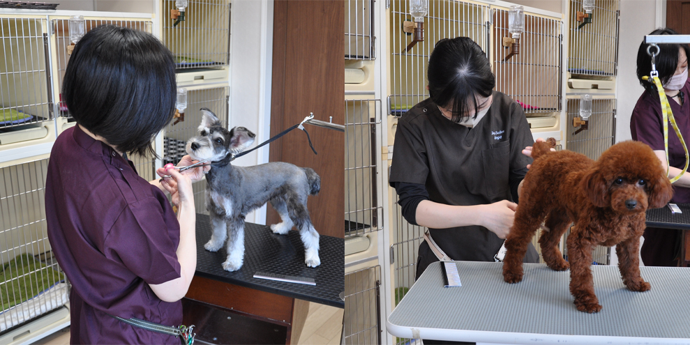 飼い主さんのご希望を聞きながら、その仔に似合うスタイルをご提案しています。