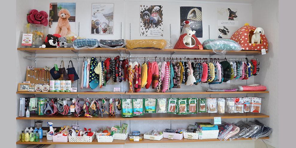 またドッグフード(各種メーカー)、シャンプー、おやつ、犬の洋服、手作りグッズ等の販売もしております。お気軽にご来店ください。