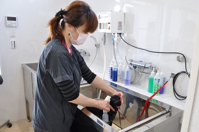 ナノバブル&オゾン水の効果で余分な皮脂を分解・洗浄してふんわり仕上がります。 細菌やウィルスを殺菌・洗浄。ペット臭も脱臭してさっぱり・スッキリ。 清潔を保ち被毛を守り、たんぱく質の流出を防ぎ、キューティクルのはがれを抑えます。 皮膚の再生を活性化して、しっしんの改善や予防に効果的です。 またアトピーやアレルギー体質、マラセチアのわんちゃんに大変効果的です。